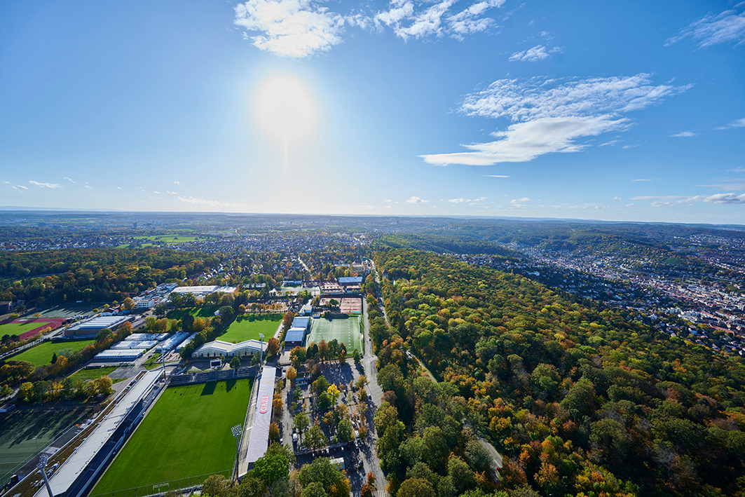 Blick vom Fernsehturm auf die Waldau mit ihren zahlreichen Sportstätten (Bild: SWR Media Services / Martin Sigmund)